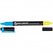 Текстовыделитель Brauberg двусторонний, скошенный наконечник 1-4 мм, лимонный/голубой