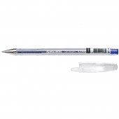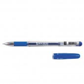 Классическая гелевая ручка с игольчатым пишущим узлом. Корпус из тонированного пластика синего цвета с рифленой поверхностью в зоне захвата для удобства письма. Сменный