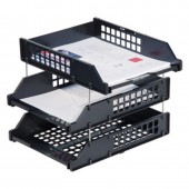 Лотки надёжно стыкуются друг с другом металлическими стержнями (6 см). Верхний лоток разворачивается на 90 градусов - это удобно для документооборота между 2-мя сотрудниками.